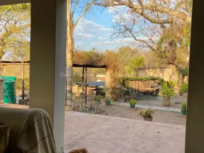 Additionally, there is a guest cottage, tucked away with its own entrance, consisting of two bedrooms, each with an en suite bathroom, plus a shared kitchenette. Outbuildings include two offices, numerous garages, carports, a workshop, and staff accommodation. Parking space on the extensive property is plentiful. The property receives a regular water supply from the municipality, has a solar power backup system, and has excellent security. This rare find has endless potential as either a grand home, safari operator town lodge, corporate accommodation, or boutique hotel, with numerous outbuildings easily converted into extra living spaces.