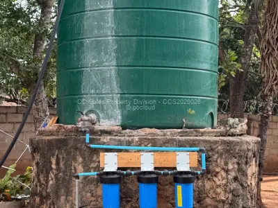 5kva solar system. A solar powered borehole plumbed to the main house. A 5,000-litre water tank with filtration system.