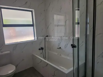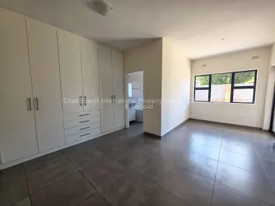 On offer at Leander Villas is one last townhouse in the complex of 12, currently close to being completed the town house will blend contemporary design with premium finishes in a secure and peaceful setting. This upmarket residence design features an open-plan layout with three spacious bedrooms, a stylish lounge, dining area, and a modern kitchen. The home design includes two sleek, fully equipped bathrooms, private landscaped gardensincluding a beautiful solar-powered gardenand large windows that invite natural light throughout. Additional highlights include a double lock-up garage and a range of high-end features designed for comfort and elegance.