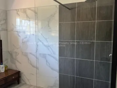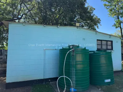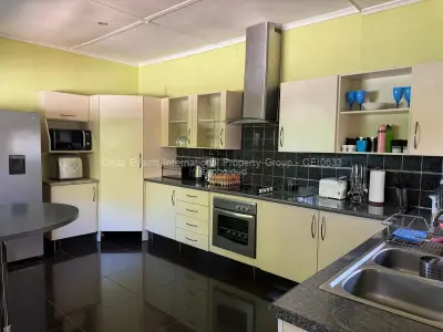 The spacious main residence boasts four generously sized bedrooms, two of which are ensuite, complemented by a modern walk-in pantry designed for comfort and privacy. The house has a modern fitted kitchen, laundry room, dining room spacious and a living roomThe home is supported by two reliable boreholes, ensuring a consistent year-round water supply, as well as two geysers that provide uninterrupted hot water throughout.
